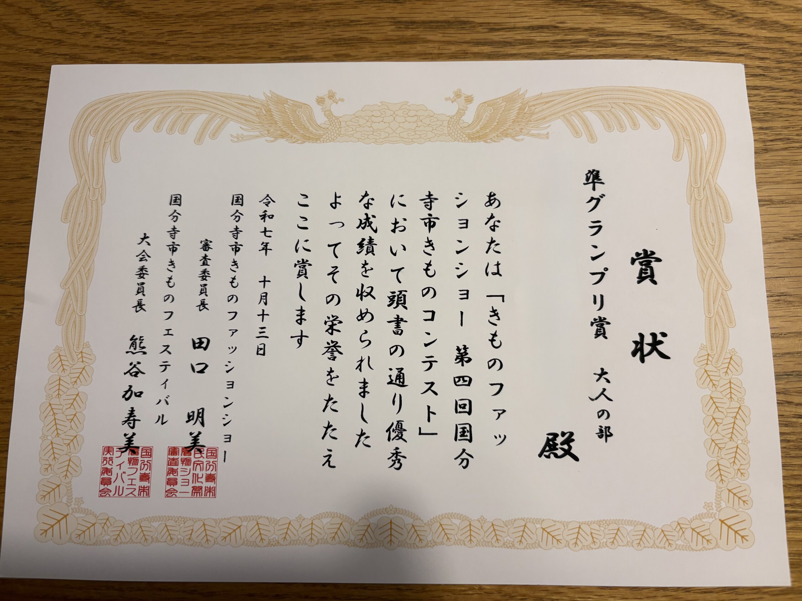 結果は、なんと準グランプリ!(女性も含めた全体2位)で、賞品として浴衣、お米を頂きました。