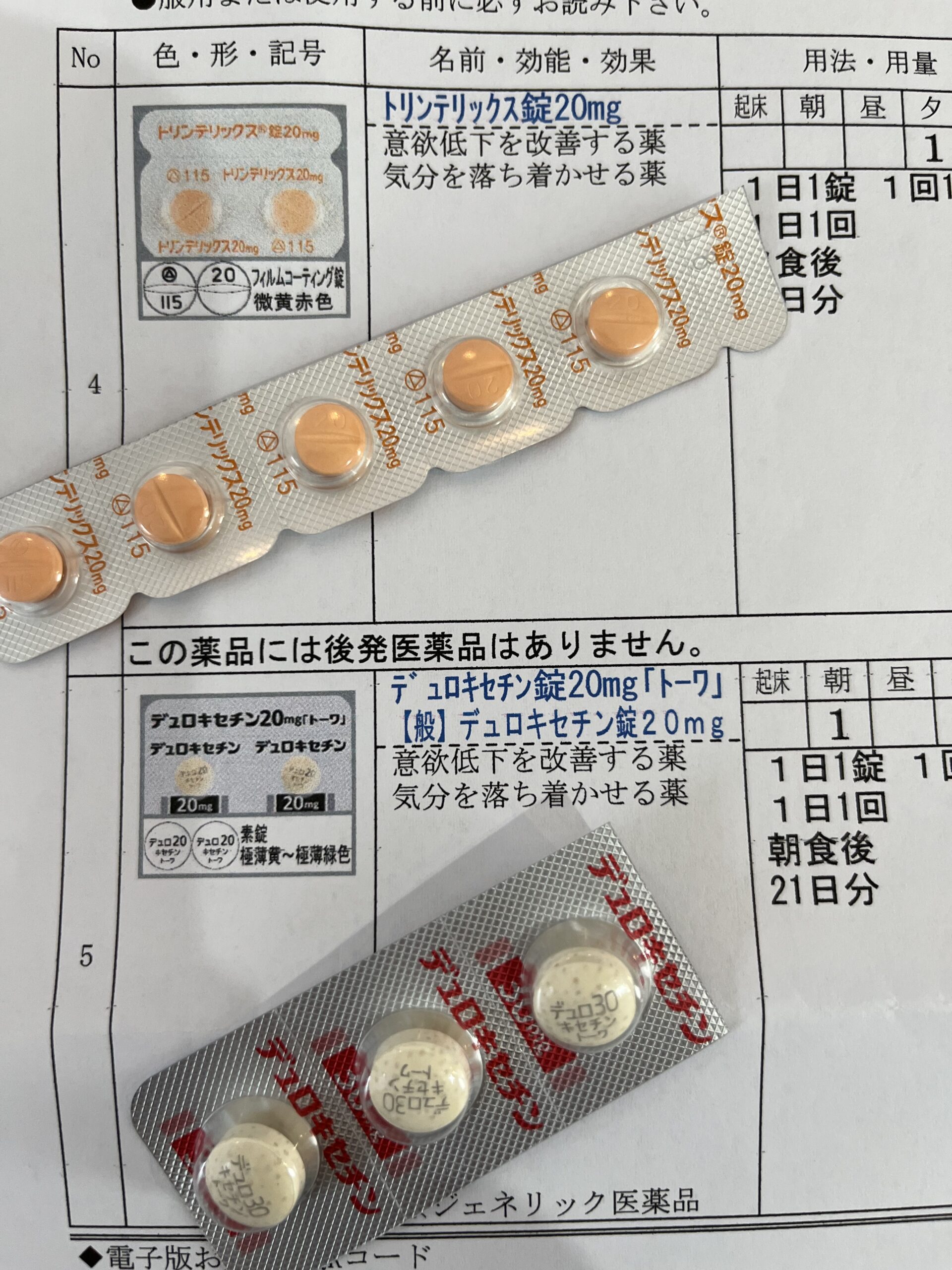 旅の準備チアです。うつの治療に薬を服用しています。意欲低下を改善する、気分を落ち着かせる薬です。