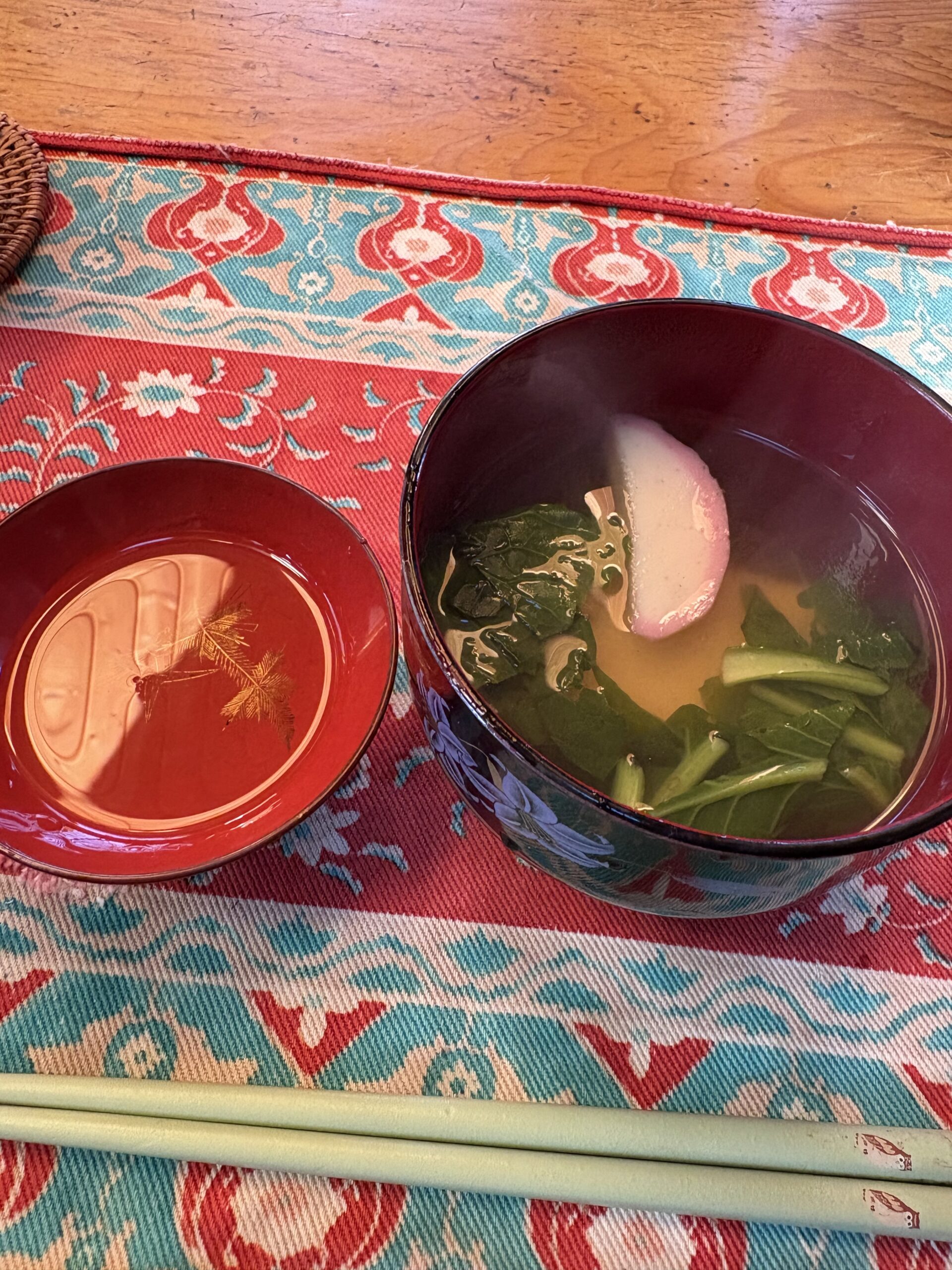 チアです。正月の朝食は、実家で名古屋風(かつお節ベース)のお雑煮を食べています。