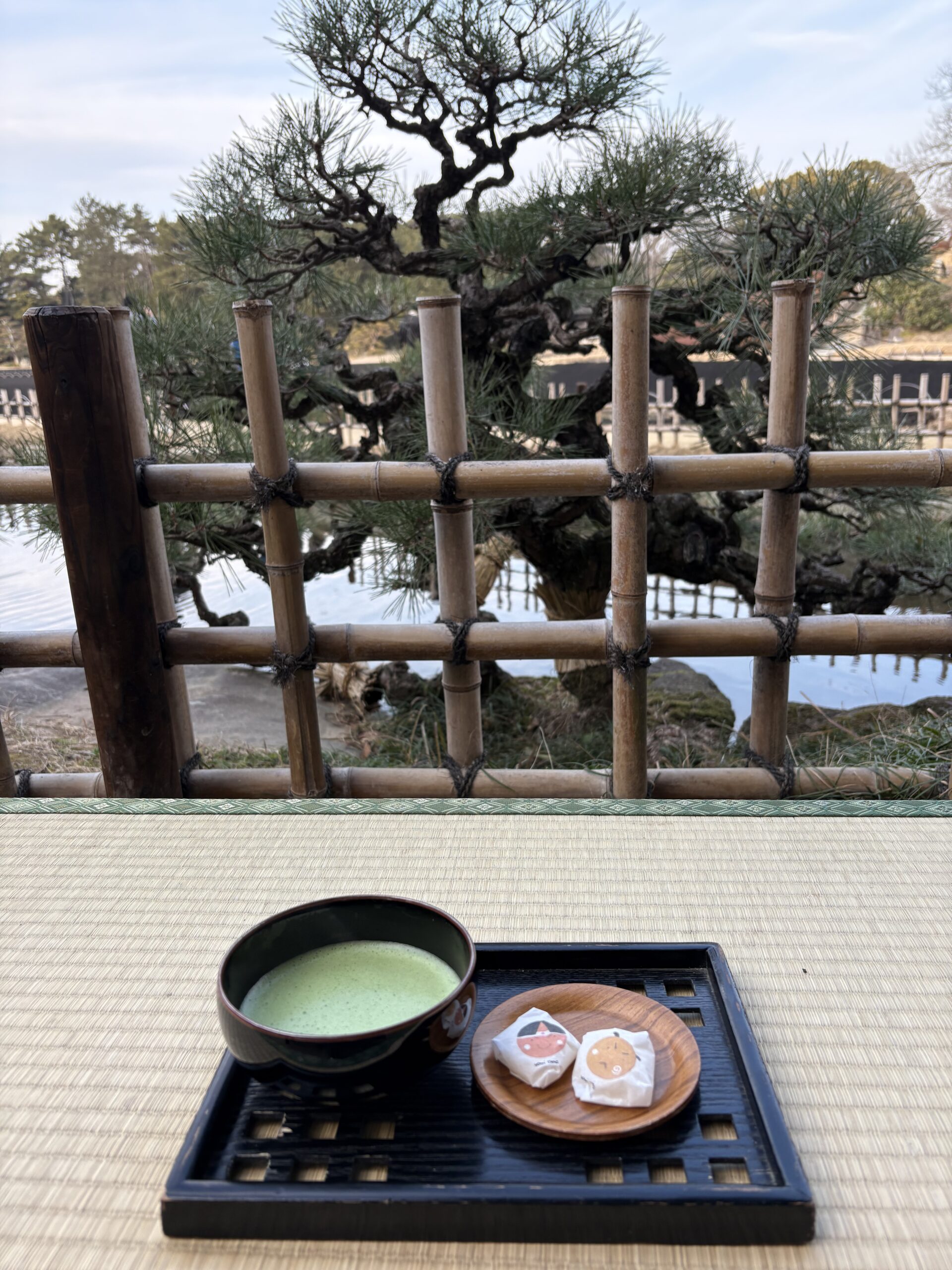 岡山城を見学した後、後楽園の茶屋で抹茶ときび団子を頂きながら、のんびりしています。