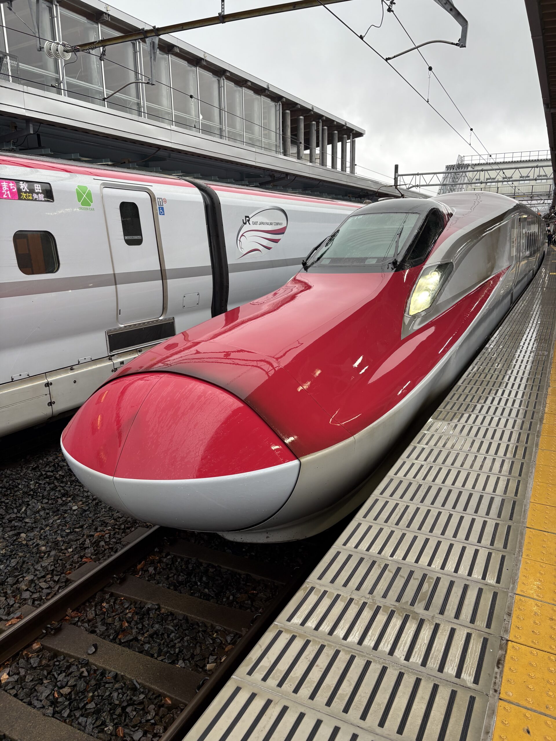 新幹線の流線形を見ると、ワクワクします。E6系、形も色もカッコいいよね。。。