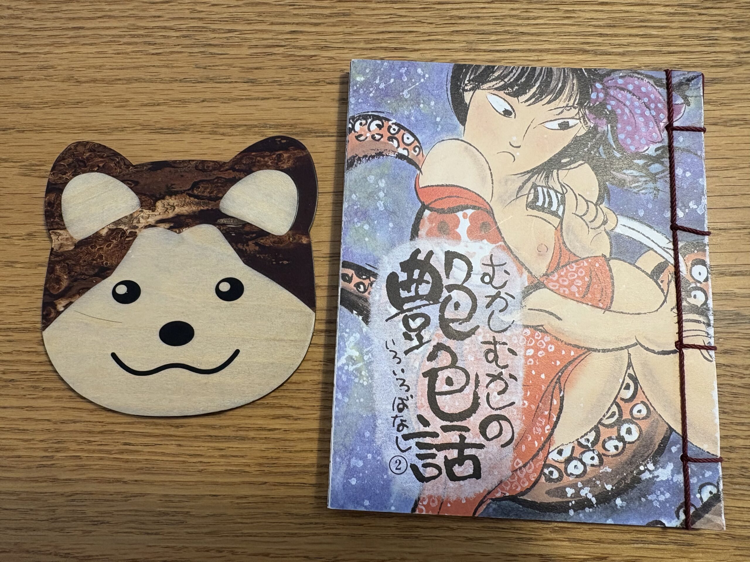 家族に怒られたな。。。写真は自分用に買った、秋田の伝統工芸「樺細工」の秋田犬コースターと、