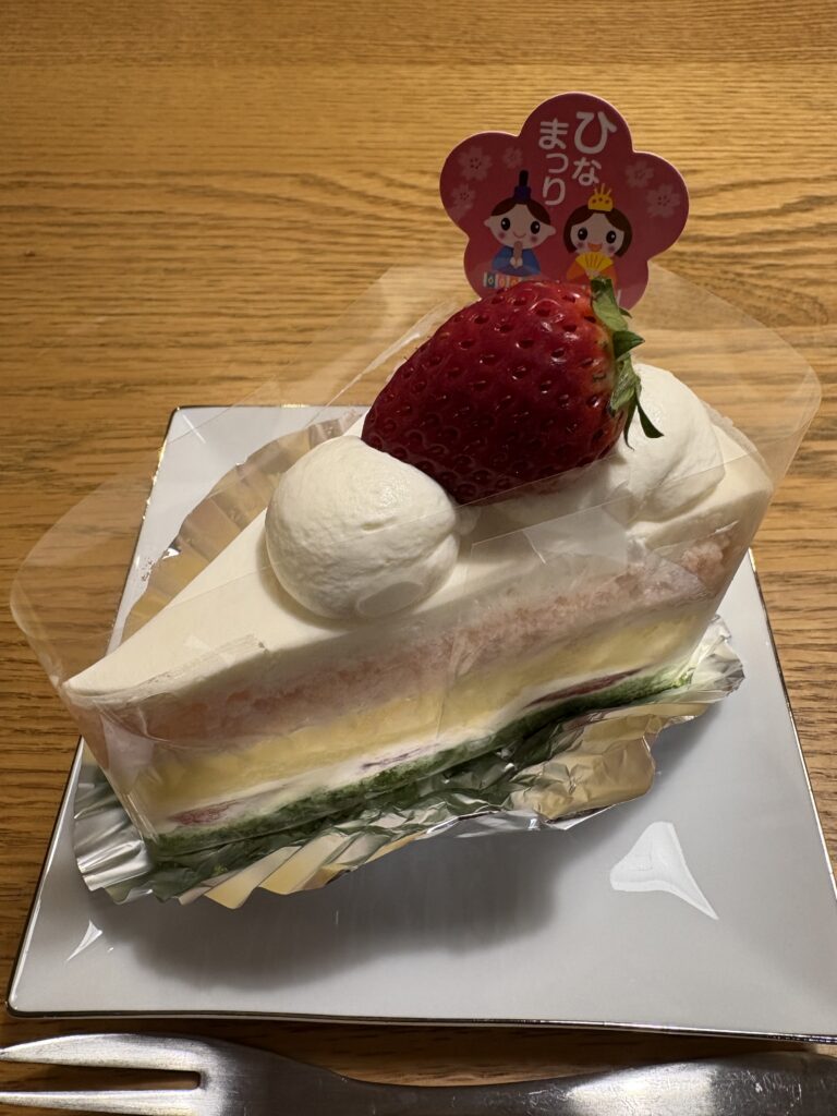 最寄りのケーキ屋でひなまつりショートケーキを一切れ買って、