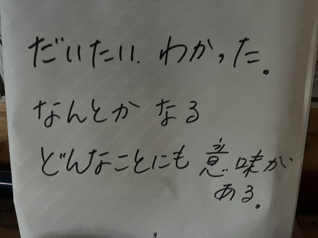 母の話は「大体分かった、なんとかなる、どんなことにも意味がある。」というもので、