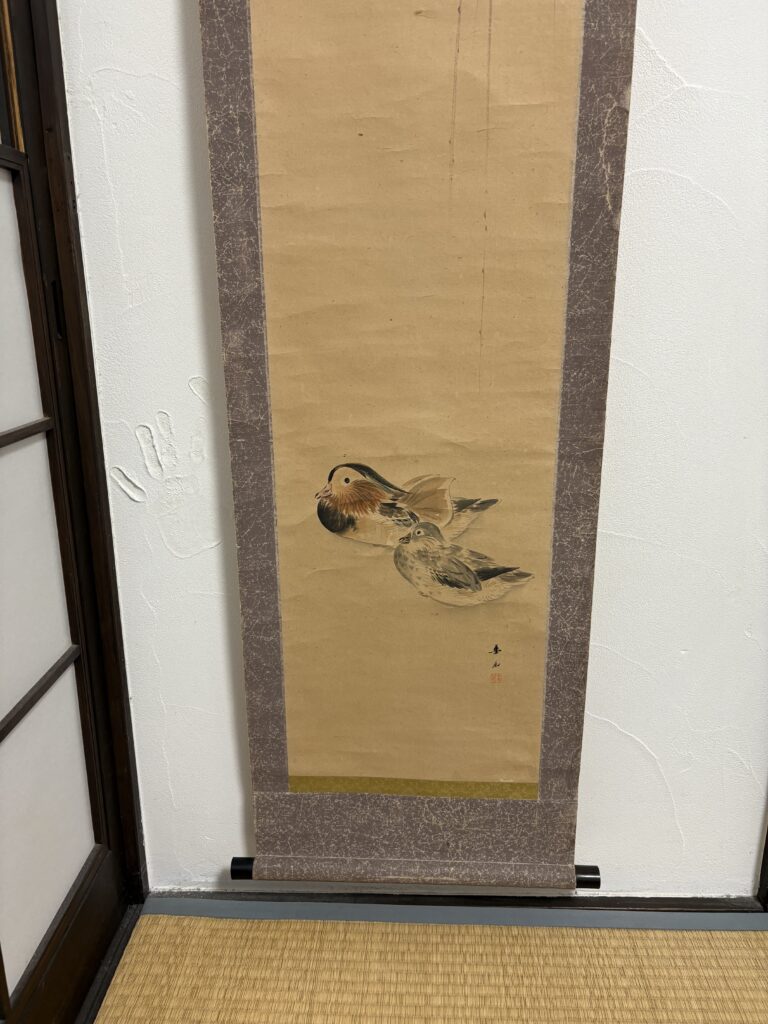 掛け軸のデザインは、多くある掛け軸の中から、あえて選んだオシドリです。