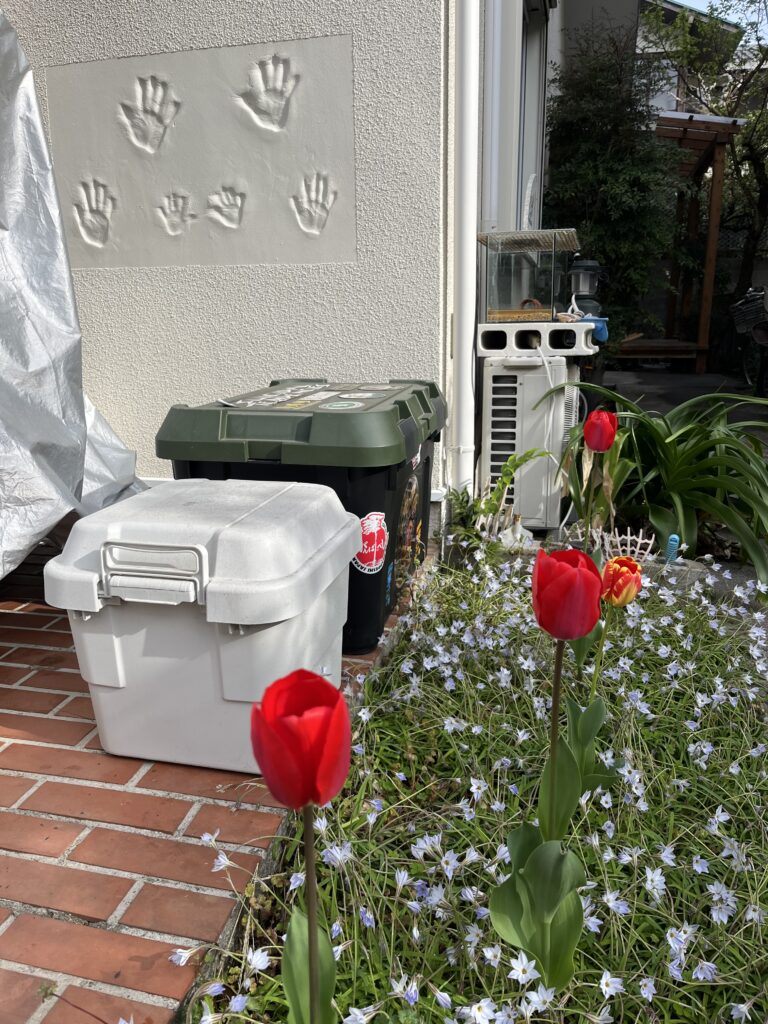 旅の準備チアです。庭のチューリップが咲きました。
