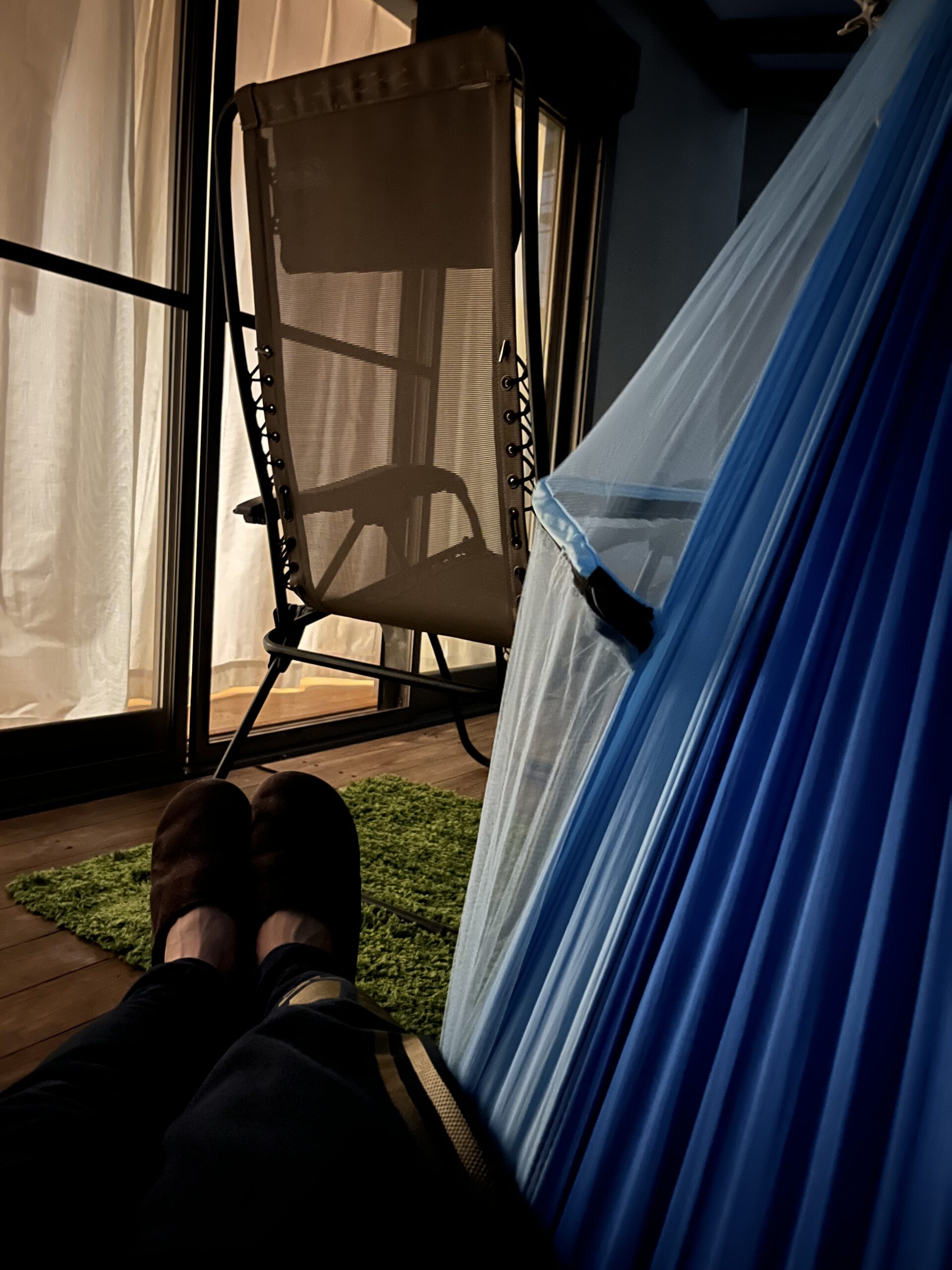 ハンモックで地に足がつかない不安定な状態に身体を任せて、身体も揺れて心も揺れる。
