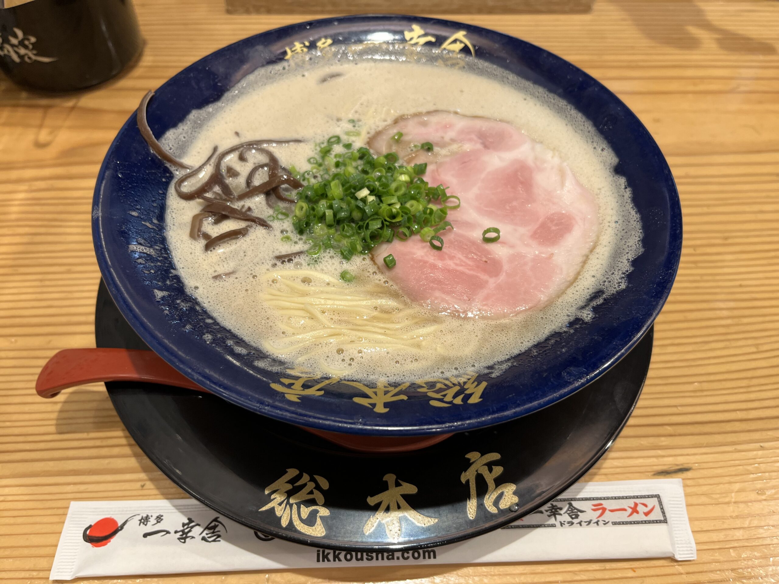旅チアです。福岡の食事はお約束の博多とんこつラーメンです。