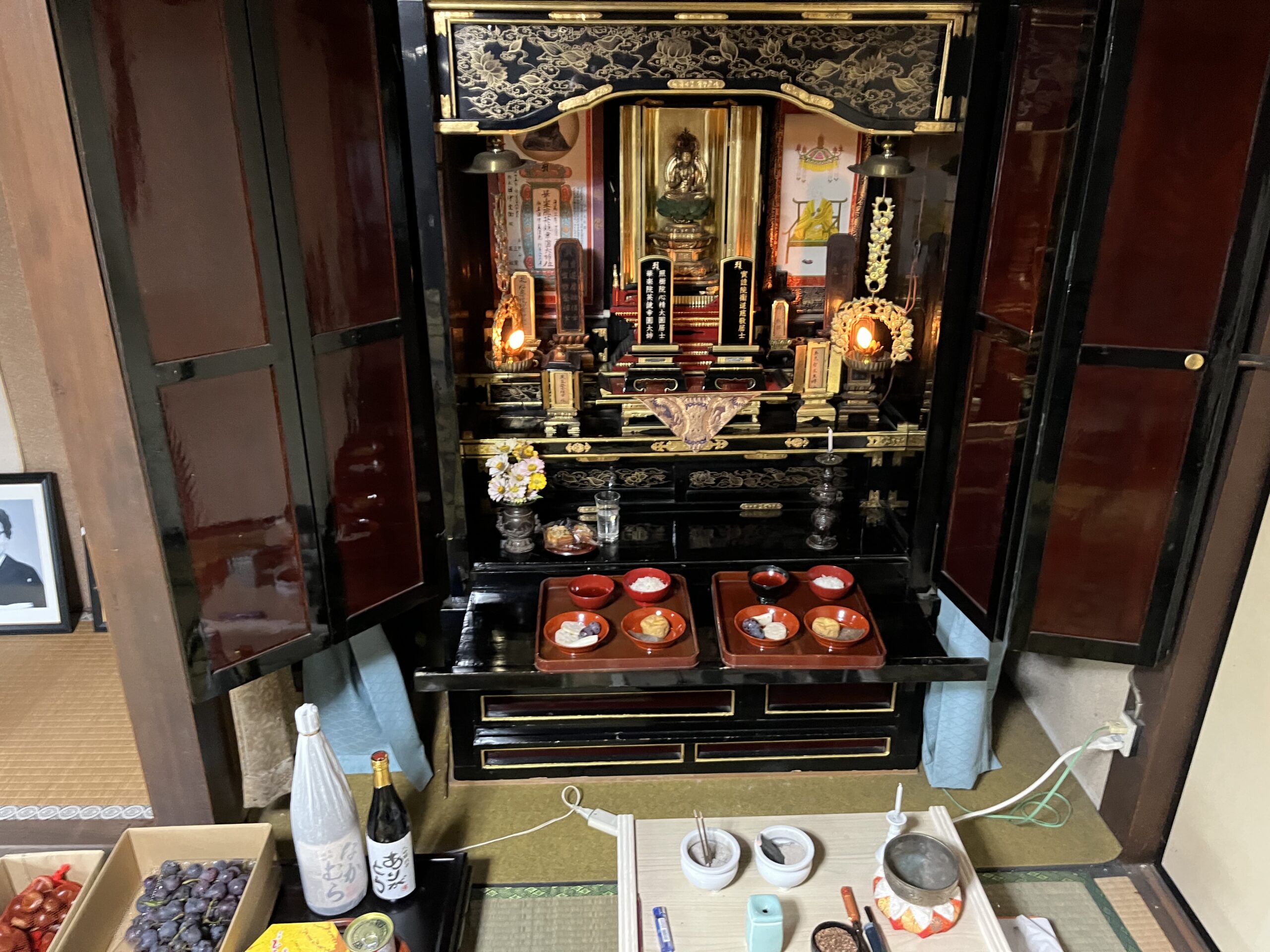 父ブンエの仏壇とお墓に、母と4人兄弟の5人で、お参りをして、掃除をしました。