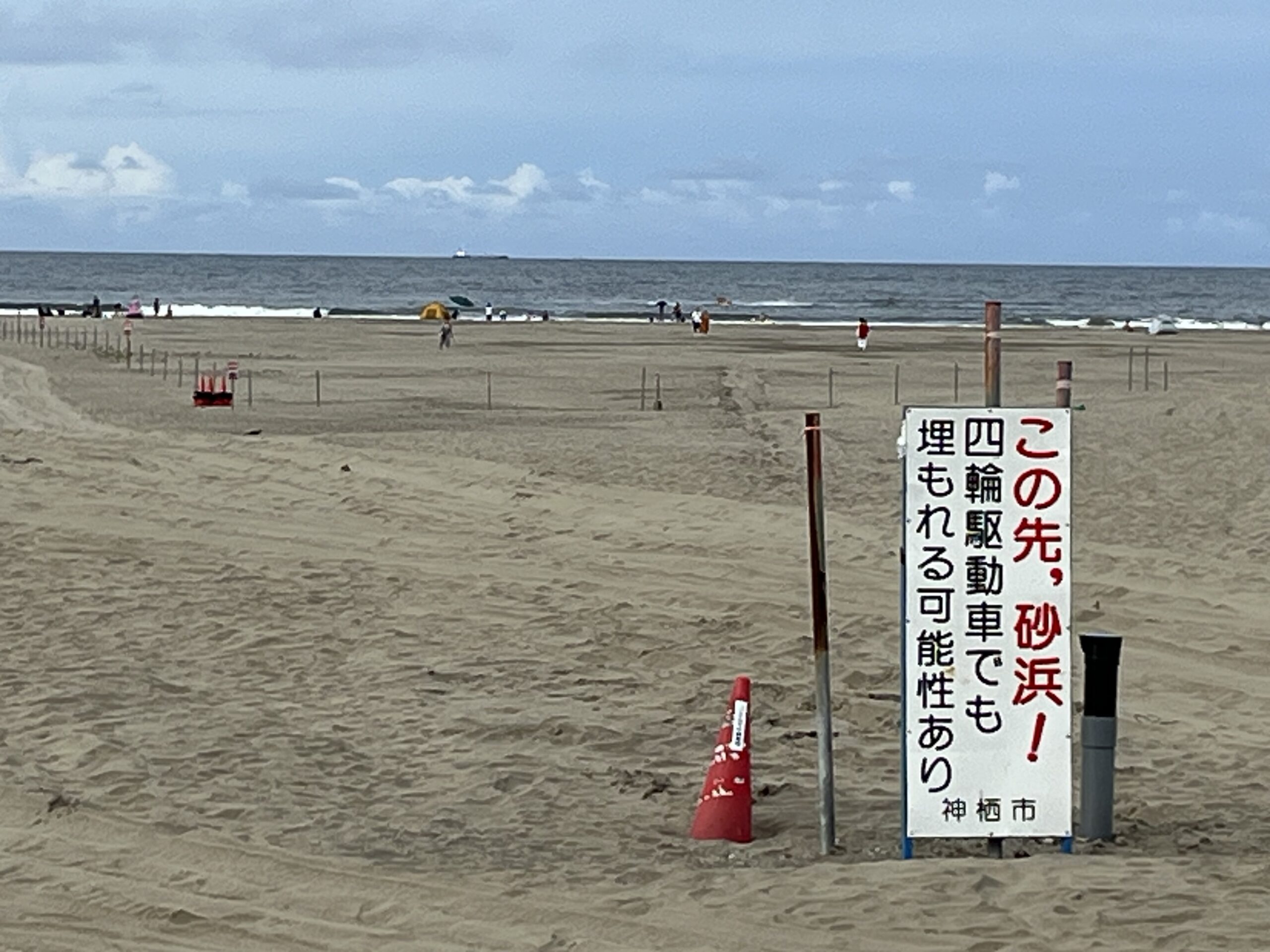 駐車場で周辺のサーファーに「スタックしてる車、押してあげません?」と声がけ。