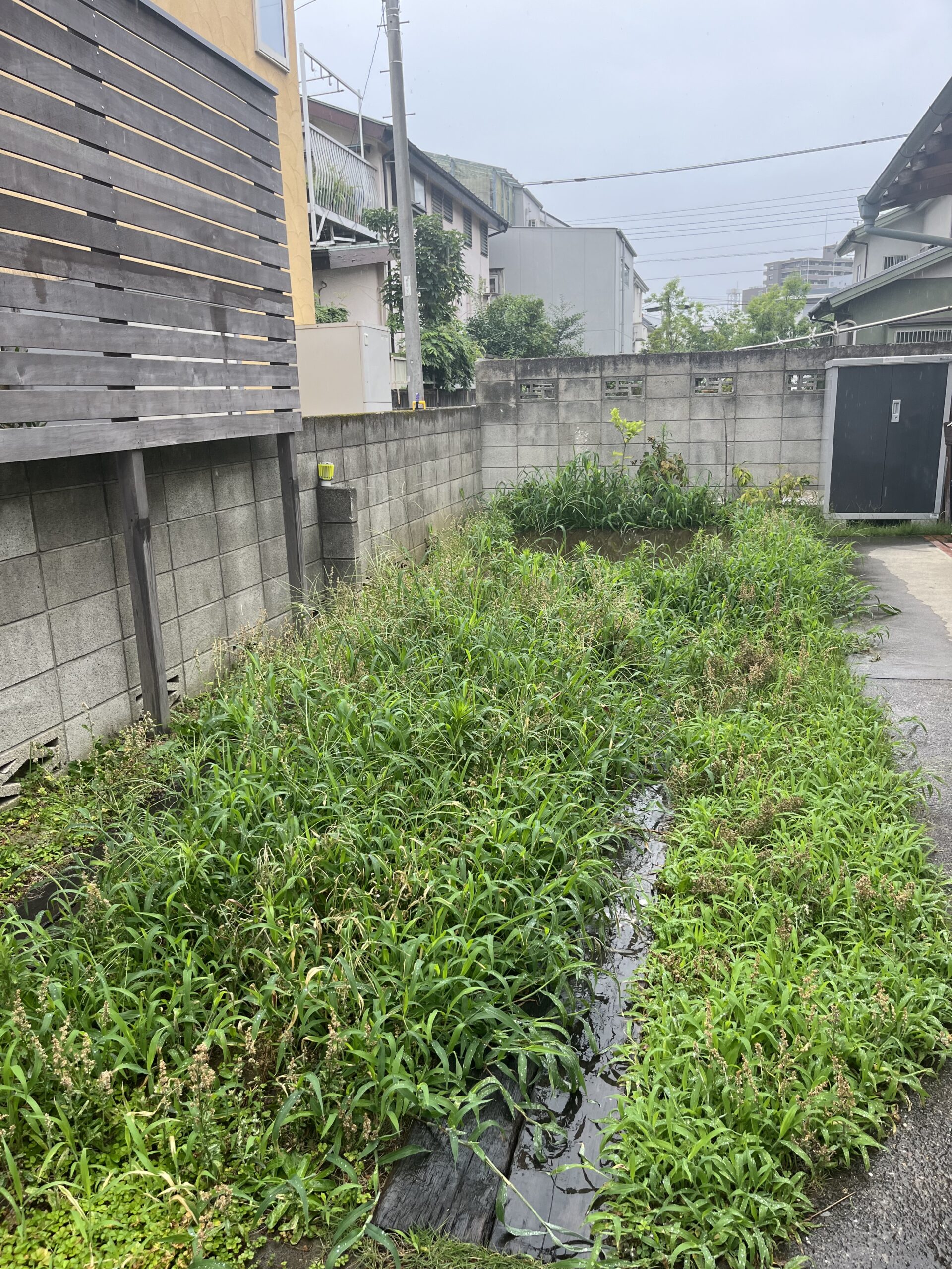 轍やウッドデッキが藪でほとんど見えない。。。バッタとカマキリも大量発生してます。。。
