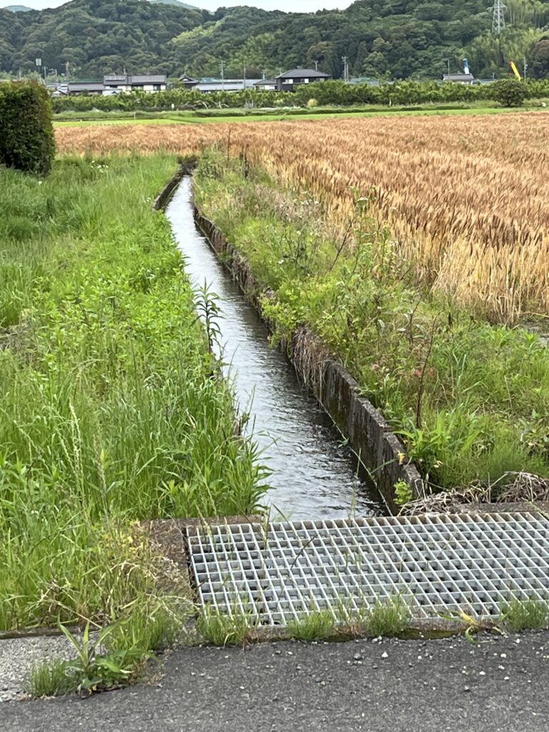 この用水路で、こどもの時よくザリガニやフナをとったっけ。。。