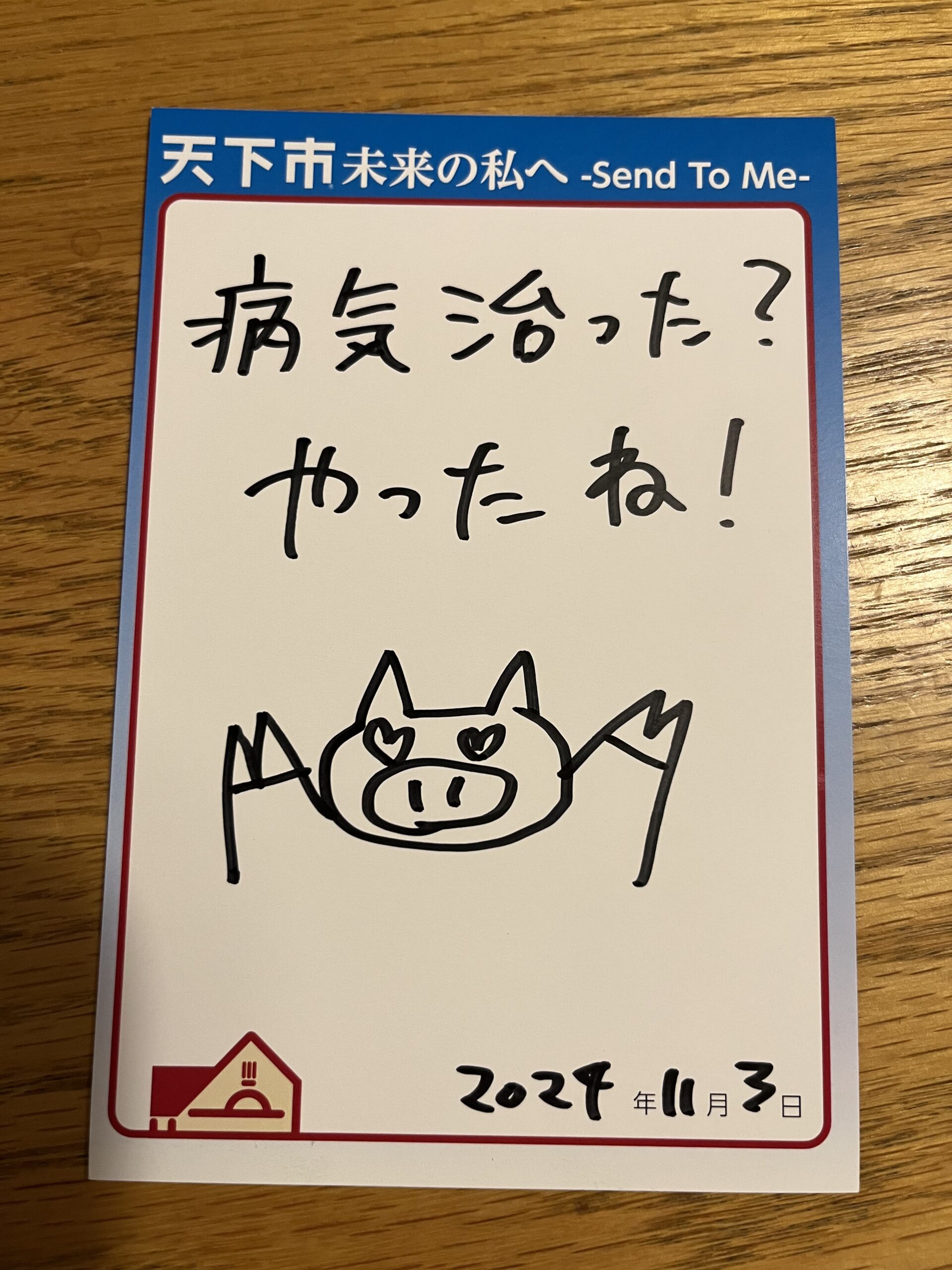 病気が治っていてほしい、と希望を込めて、1年後の自分に手紙を書きました。