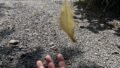 イガにトゲを足で開いて、栗を取り出して、イガは捨てて、栗はバケツに入れる。