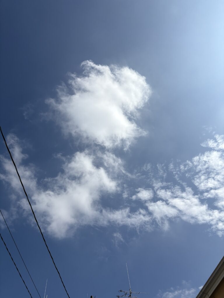 旅の準備チアです。天気が良く、家の庭から見る秋の空がキレイです。