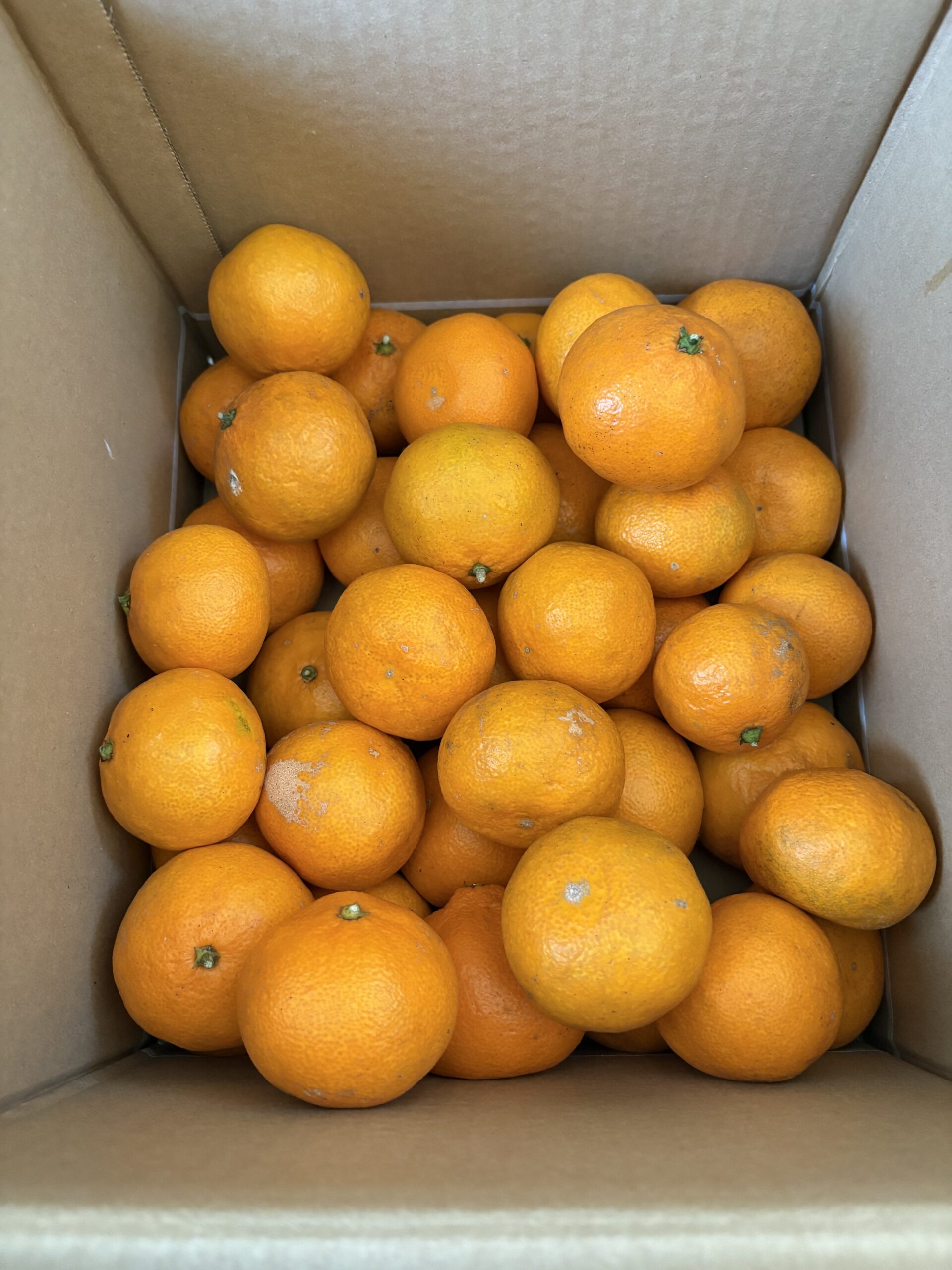 家に帰ってきて、段ボールをあけると、みかんのいい香り。早速頂いています。