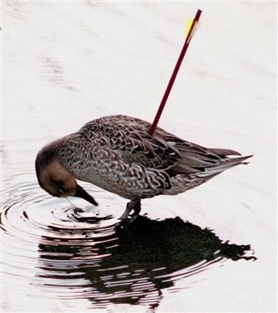 矢が刺さっているのに、それでも生きていかざるを得ない、矢ガモの心境です。